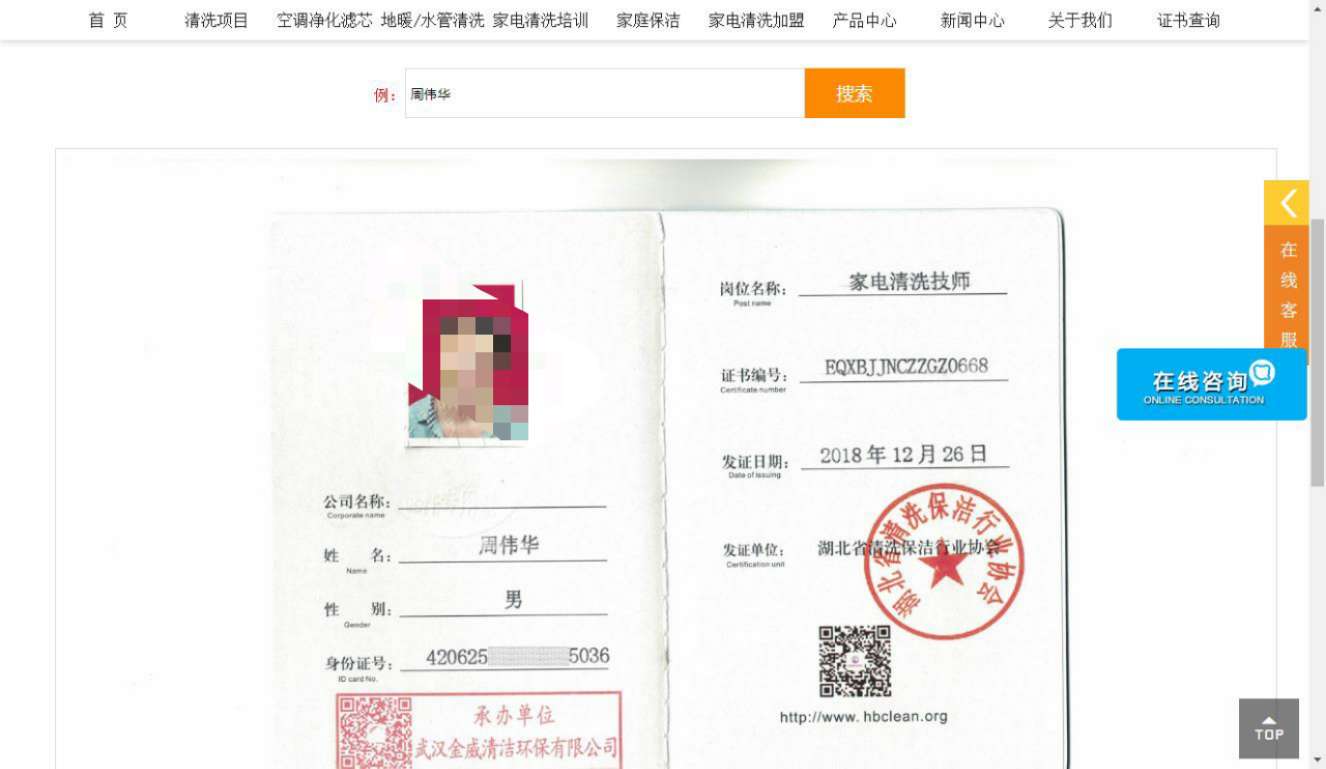 為保證家電清洗技師資格證書的權(quán)威性和真實(shí)性,家電清洗技師資格證書在線查詢功能正式上線!