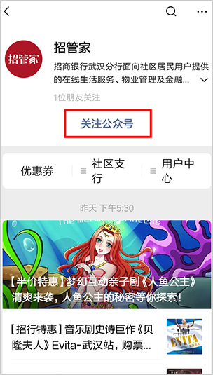 第一步:搜索招商銀行公眾號“招管家”并關注;