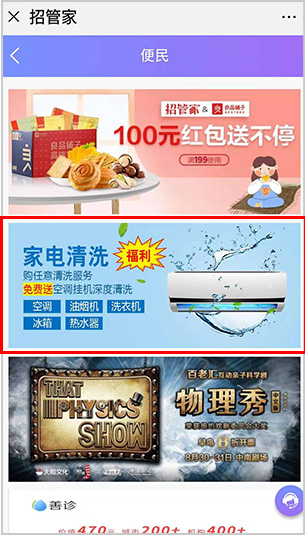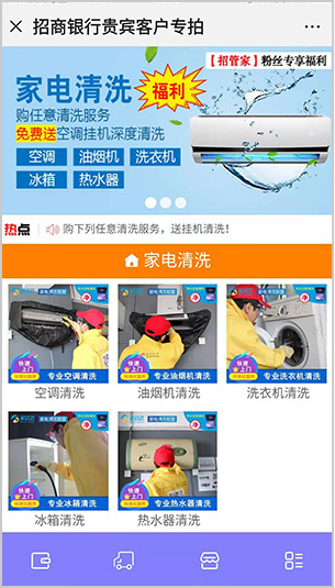 關注招商銀行公眾號“招管家”,下單任意一項家電清洗服務,即可免費送一臺空調掛機深度清洗!