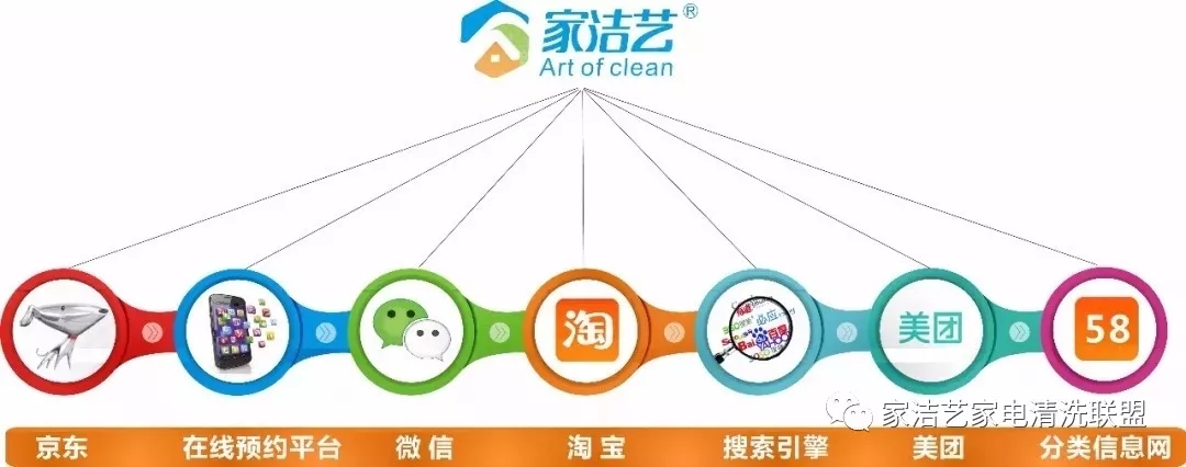 家潔藝®家電清洗聯(lián)盟作為在家電清洗行業(yè)杰出的優(yōu)秀品牌,為消費(fèi)者提供專業(yè)高效的上門清洗服務(wù),為創(chuàng)業(yè)者提供真實(shí)可靠的創(chuàng)業(yè)平臺(tái)。公司目前已與美團(tuán)、58、百度多個(gè)平臺(tái)合作,在京東、淘寶均有入駐,在微信商城、小程序等平臺(tái)均開(kāi)發(fā)了自己的品牌服務(wù),公司的線上、線下渠道已形成商品、營(yíng)銷、服務(wù)全方位一體的大平臺(tái),并且正在積極推廣更便捷的服務(wù)模式。