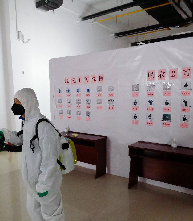 當(dāng)方艙醫(yī)院建成以后,家潔藝又承接下方艙醫(yī)院的日常消毒工作。