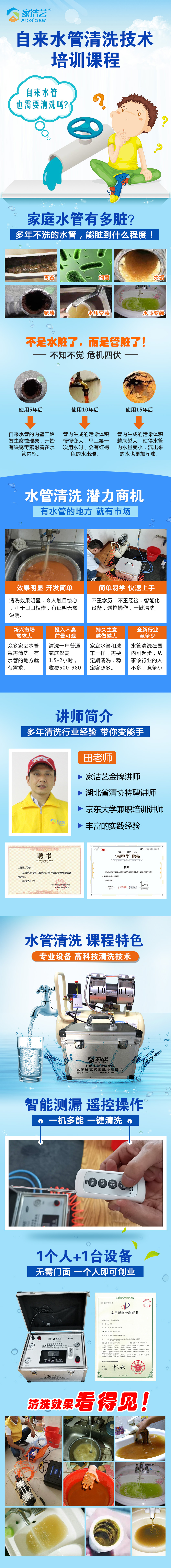 為了加大宣傳推廣力度,家潔藝線上自來水管清洗技術(shù)課程,限時(shí)特價(jià)