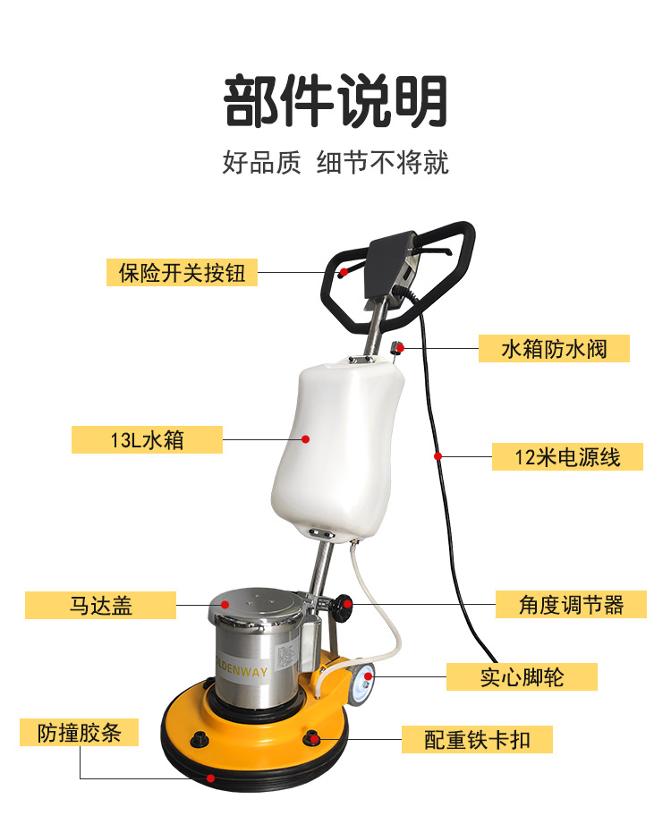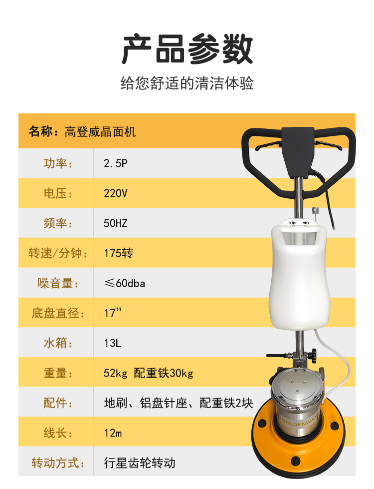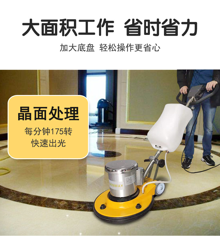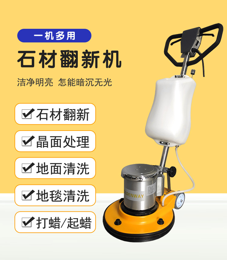 一機(jī)多用:地板打蠟/起蠟、石材翻新、晶面處理、地面清洗、地毯清洗。