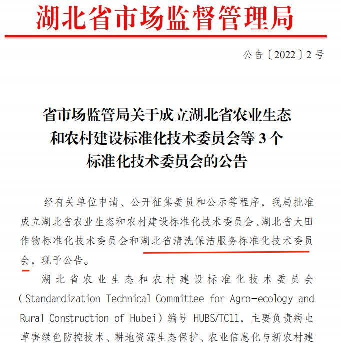 2022年5月10日,湖北省市場(chǎng)監(jiān)督管理局發(fā)布公告,批準(zhǔn)成立湖北省清洗保潔服務(wù)標(biāo)準(zhǔn)化技術(shù)委員會(huì)等3個(gè)標(biāo)準(zhǔn)化技術(shù)委員會(huì)。