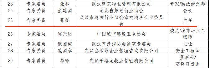 本公告還公布了湖北省清洗保潔服務(wù)標(biāo)準(zhǔn)化技術(shù)委員會(huì)第一屆委員名單,武漢金威清潔環(huán)保有限公司董事長(zhǎng)兼總經(jīng)理張璽先生,作為武漢市清潔行業(yè)協(xié)會(huì)家電清洗專(zhuān)業(yè)委員會(huì)主任,成為省清洗保潔標(biāo)委會(huì)專(zhuān)家委員之一。