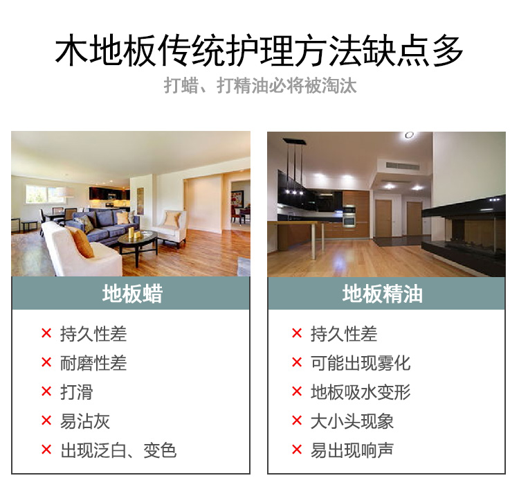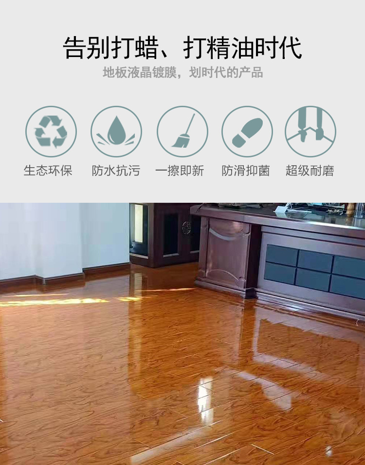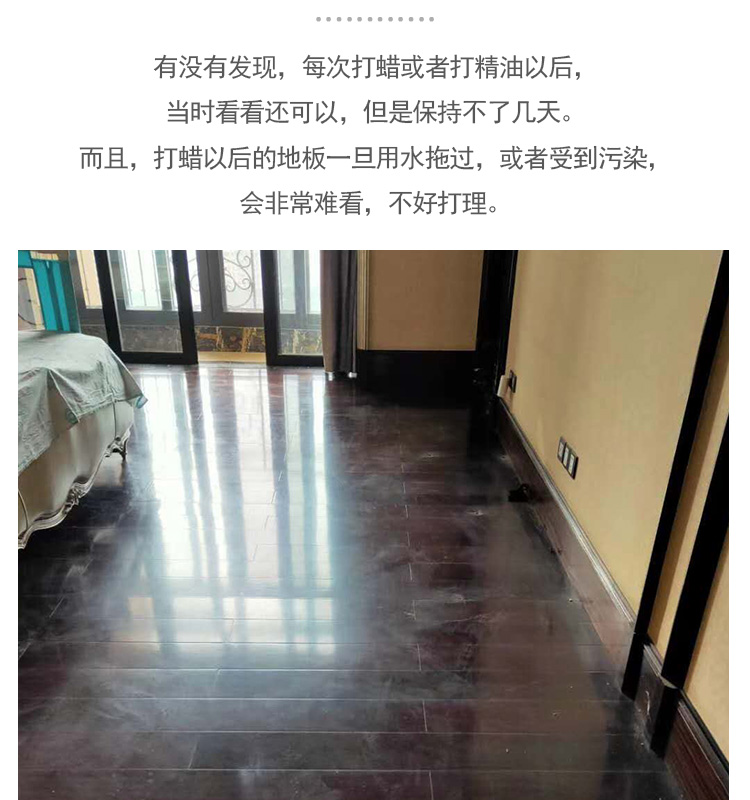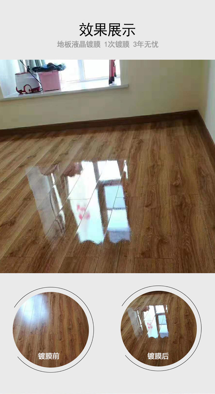 地板護(hù)理新方式,比打蠟更持久、更耐磨、更亮麗!打蠟管1月,鍍膜管3年!適用于實(shí)木地板、實(shí)木復(fù)合地板、原木地板等。為高端家庭專(zhuān)屬打造!