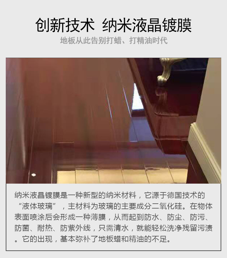 納米液晶鍍膜,讓地板易打理,更亮麗!
